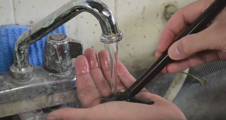Brush Cleaning To clean, gently wash brushes after use by swishing them around in a jar of cool water or under a cool faucet. Do not use warm water or soap, as they dry out the natural oils in the brush hairs and may dissolve the glue that holds the hairs inside the handle.