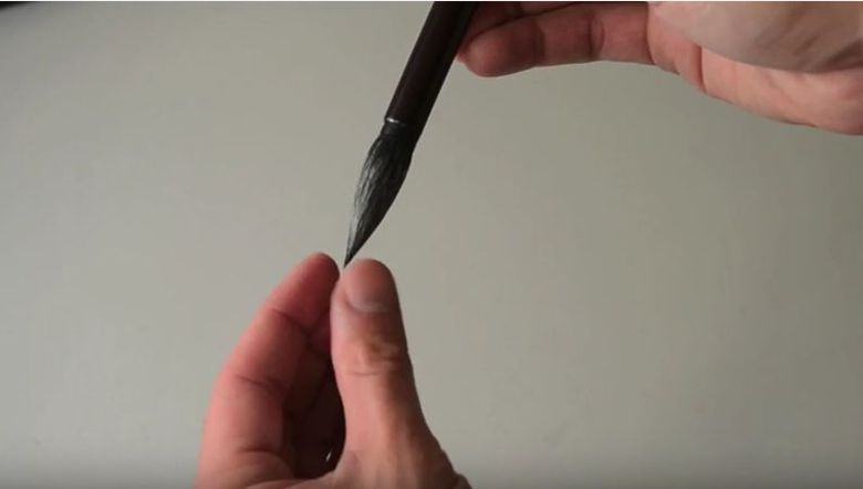 Shake any excess water from the brush. Dry the handle and ferule and "Dress" the brush by wiping it against a paper towel or between your fingers to bring it to its original shape. Make sure the hairs are straight.