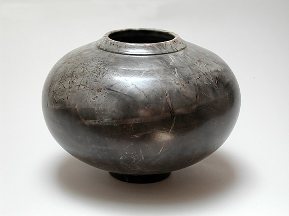 Raku Vessel, Burnished Porcelain 6" high 8" wide, $250.00 |
