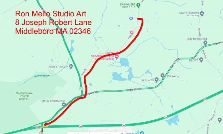 From the Boston area take rt. (93) expressway south to rt. 128/95. After a few miles bear left on rte. 24 south to rte. 495 south. Proceed to Exit # 6 - 44 Middleboro/Plymouth. At the end of the exit take a right on rt. 44 East, go about 1/2 mile to the rotary half way 'round and then continue on rte. 44 East (toward Plymouth) 4 miles and 4 sets of lights. Take a left at the 4th light on rt. 105 (Plympton Street) go about 1/2 mile and BEAR LEFT and continue on rt. 105 (Thompson Street). Go about 1/4 mile and BEAR RIGHT on Fuller street, its exactly 1 mile to Joseph Robert Lane on your left at the pottery sign. We are number 8, the first driveway on the direct left. Look for the pottery sign. Studio and Gallery are available by appointment or by chance only at this time. It is best to call 508-941-2149 ahead or Email |