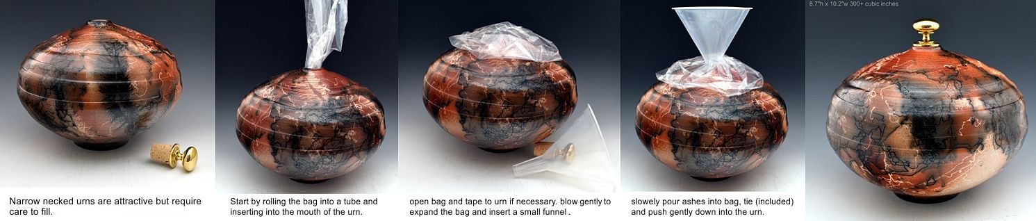All urns, especially narrow necked urns require care to fill properly. Click each image for instructions on each step. Thank you.
