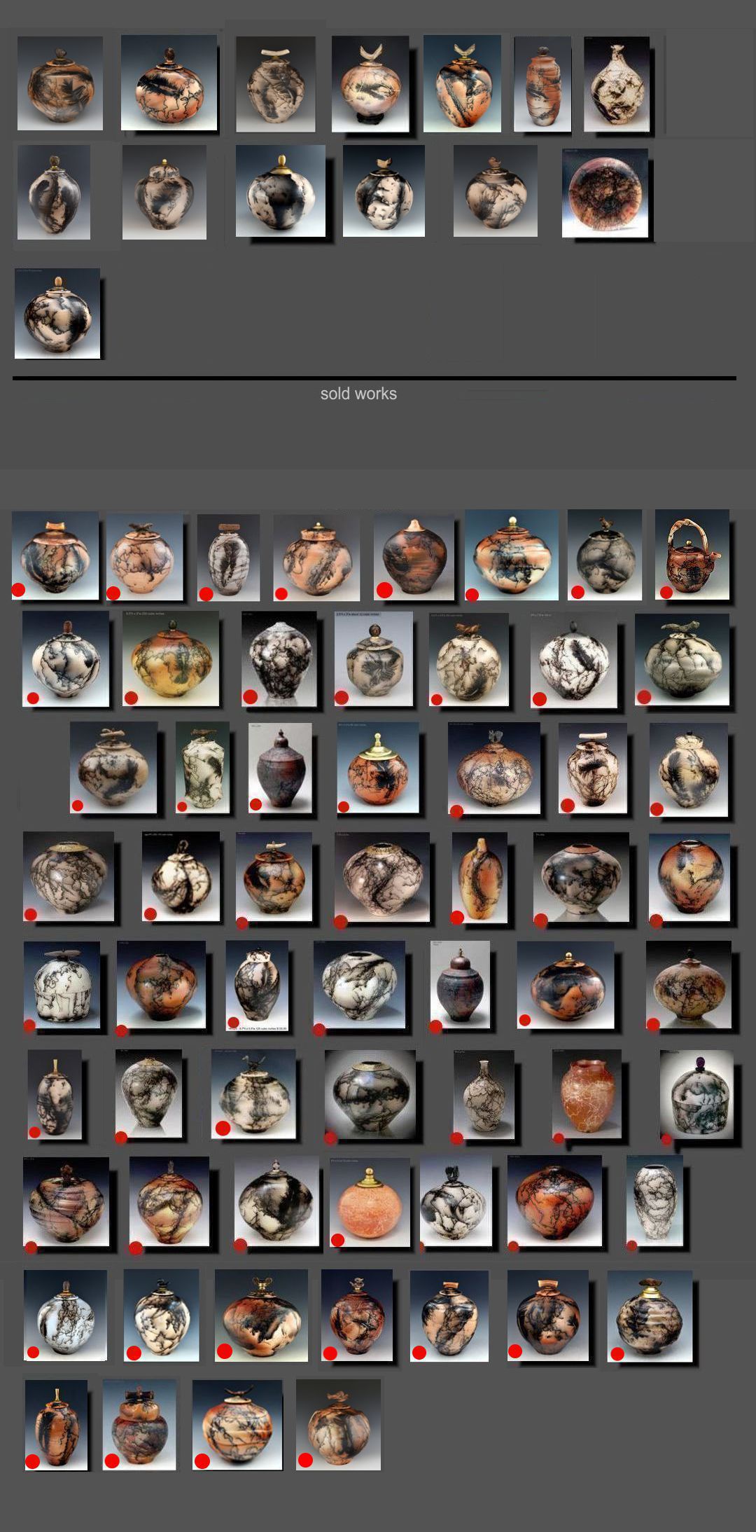 for more information. How to Order - Horse hair firing information After firing and cleaning I coat the piece with bees wax or acrylic wax to protect the surface. Horse hair works intended for decorative or dry storage use (ashes). You can care for them as you would fine woodworking. Keep out of extended direct sunlight and DO NOT place water in these vessels as it will ruin the finish. I am always creating new work and have many works not listed on this page. Please contact me for information and pictures/prices.