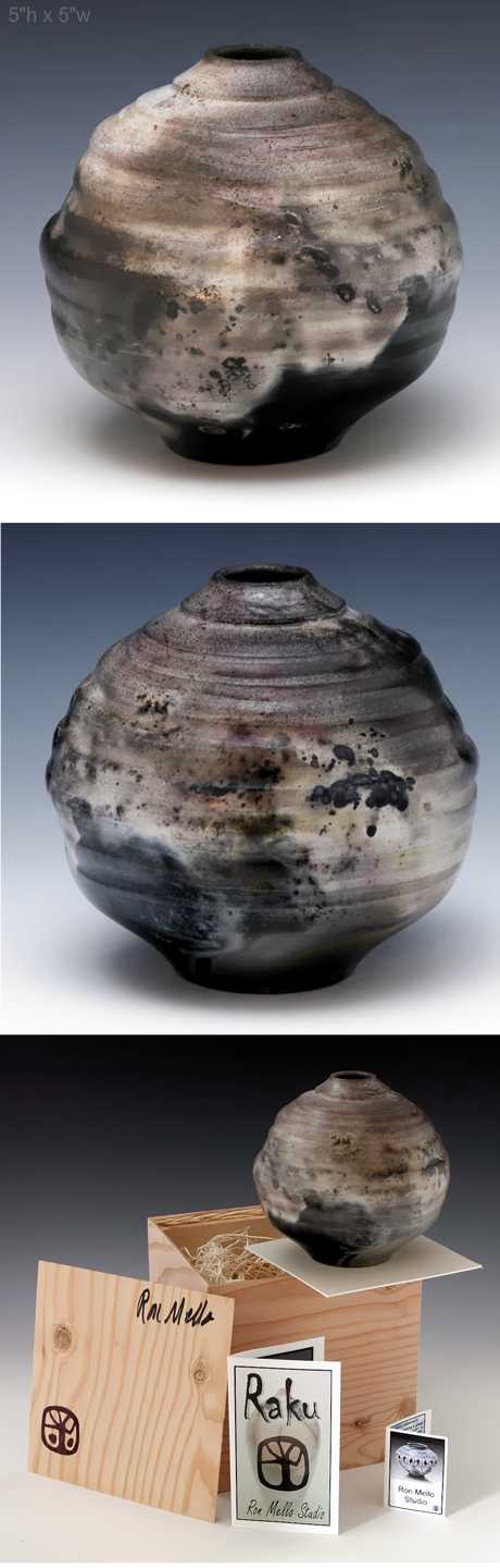 Pit fired 8 5"h x 5"w I only pit fire 2 or 3 pieces a year. this one was wheel thrown and altered burnished and pit fired with oxides and salt. It includes a laminated pine presentation box with signatures scroll down for details
